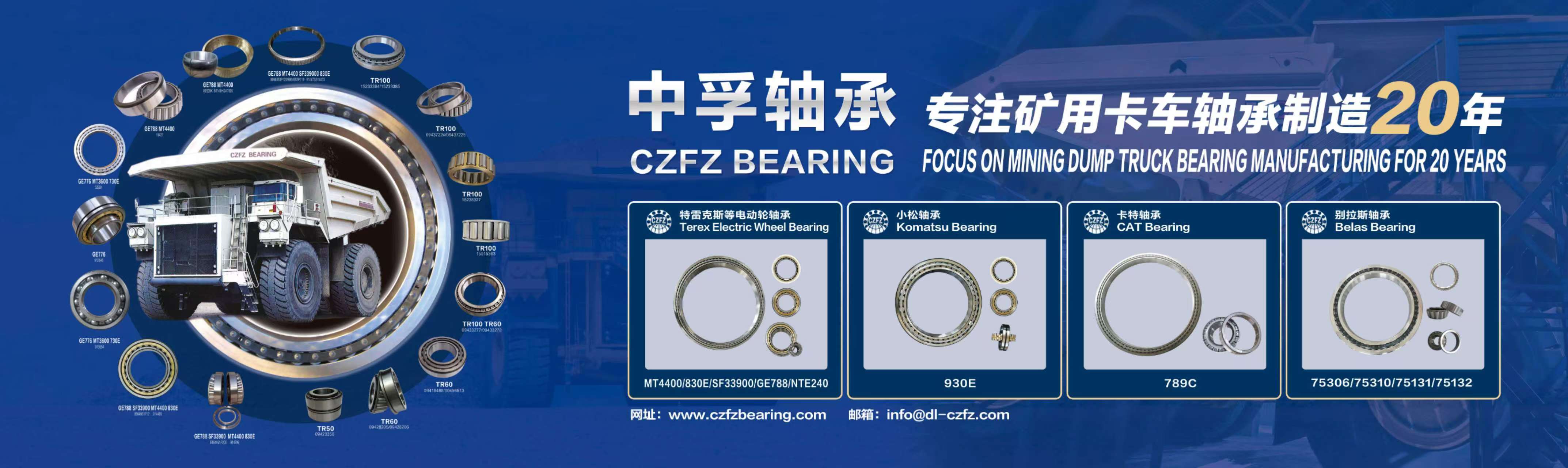 公司2005年開始試制生產325M車型軸承,成功替代進口軸承,得到廠家的好評。2007年開始研制開發特雷克斯系列車型軸承,2010年后開發多個系列的電動輪軸承(載重130T-320T車型)。產品已被國內多家企業所采用,遠銷美國、英國、土耳其、俄羅斯、印度、澳大利亞、新西蘭等國內外市場。
